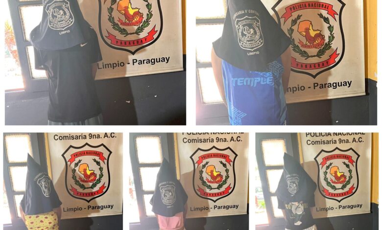 En total, cinco personas fueron detenidas durante el procedimiento. Dos de ellas cuentan con antecedentes: una mujer de 58 años por hurto y otra por tenencia y comercialización de estupefacientes.