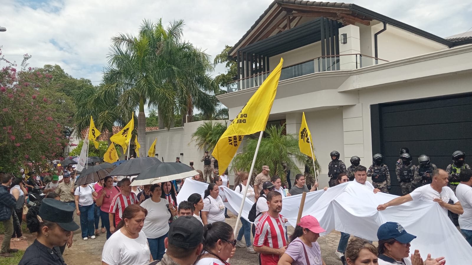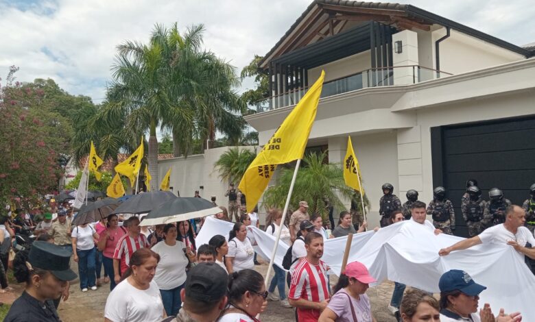 Siguiendo el itinerario previsto, los docentes se dirigieron luego al domicilio del vicepresidente de la República, Pedro “Mangui” Alliana, ubicado en el barrio General Díaz, donde la Policía Nacional desplegó un importante operativo de seguridad para resguardar la residencia del segundo del Ejecutivo y actual presidente en ejercicio.